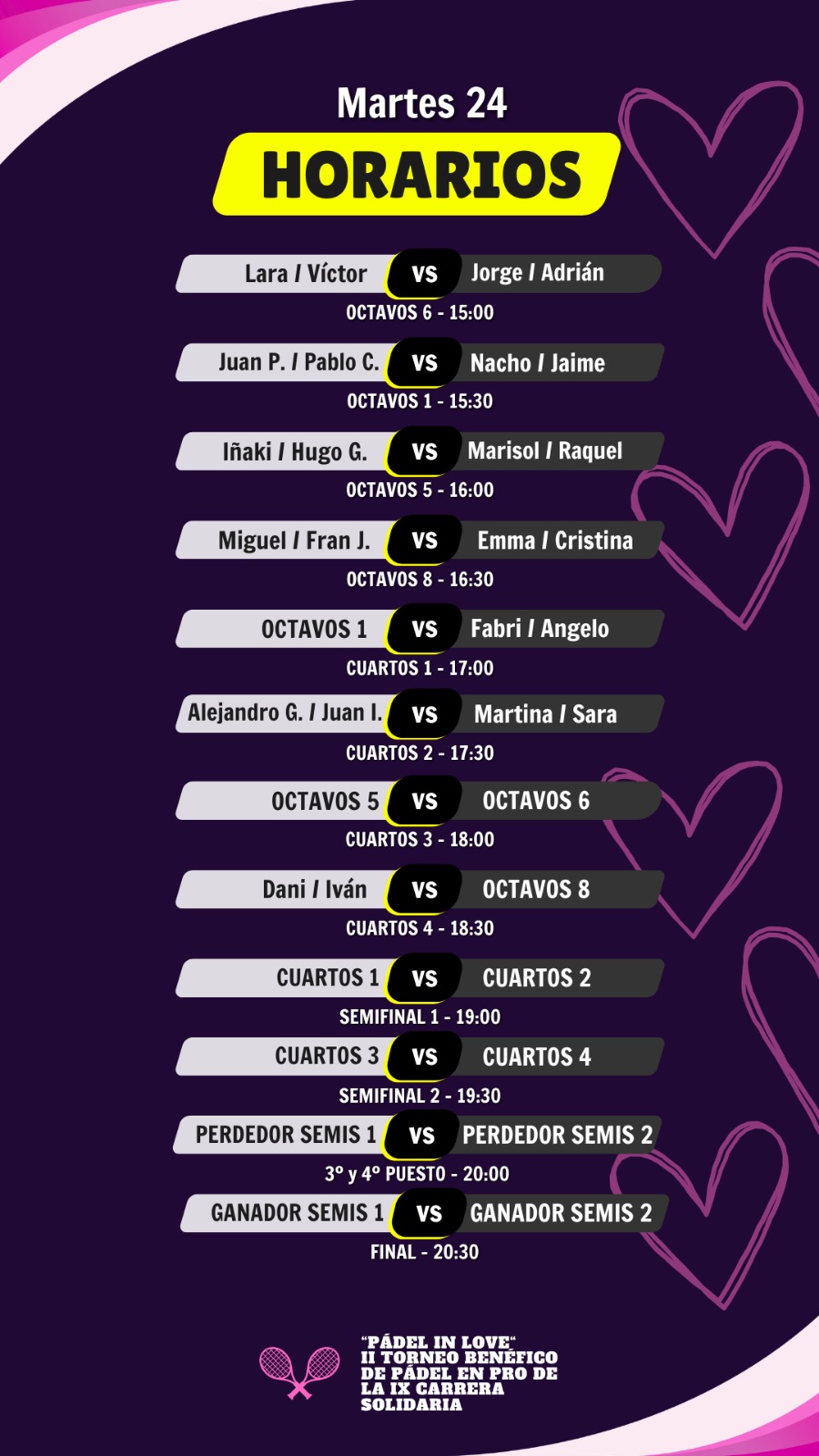 📅 HORARIOS MARTES 24 – PÁDEL IN LOVE 💖
